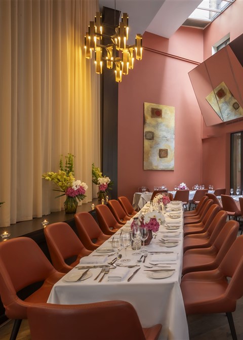 The Georgian Boardroom is located on the first floor above the Art Gallery. This means that it is the perfect venue for a private and confidential meeting. It offers floor to ceiling windows with views over the river Liffey and high Georgian ceilings. This room is chic and stylish with a fireplace, contemporary chandelier, cherry red leather office chairs and heavy mahogany table. There is a balcony area which is perfect for tea and coffee breaks and this overlooks the Courtyard Garden.
